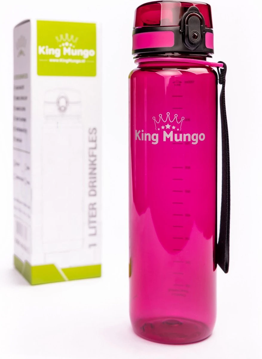 Hervulbare 1000 ML drinkflessen van King Mungo zijn door iedereen (voor volwassenen en kinderen) en overal te gebruiken, altijd water bij je: tijdens het sporten, op je werk kantoor, tijdens outdoor activiteiten, backpacken, onderweg in de auto of gewoon thuis. De fles gaat jaren mee en is dus heel duurzaam! Kies een van de diverse kleuren (blauw, donkerblauw, roze, groen, donkergroen, zwart, rood/paars en grijs) drinkflessen die King Mungo in het assortiment heeft. Hervulbaar, zeer functioneel, grote inhoud, gemaakt van zeer sterk Tritan en de grote sport drinkflessen bevatten geen BPA.