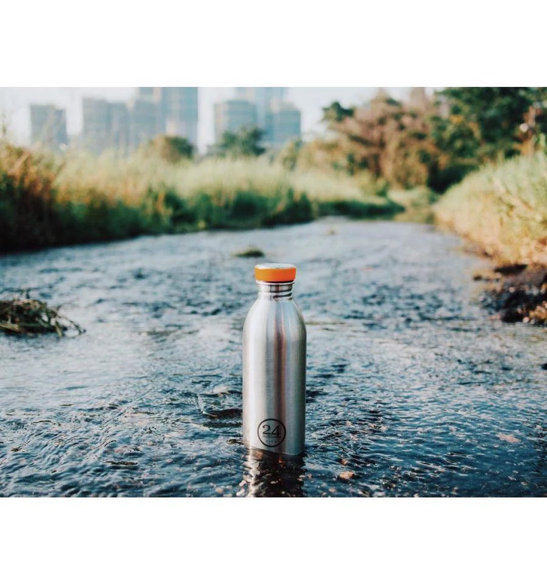 De 24Bottles drinkfles, Urban Bottle Steel met een inhoud van 500 ml is de ideale manier om water of andere drankjes mee te nemen voor onderweg. De Urban Bottle is het perfecte duurzame alternatief voor wegwerp plastic flessen.