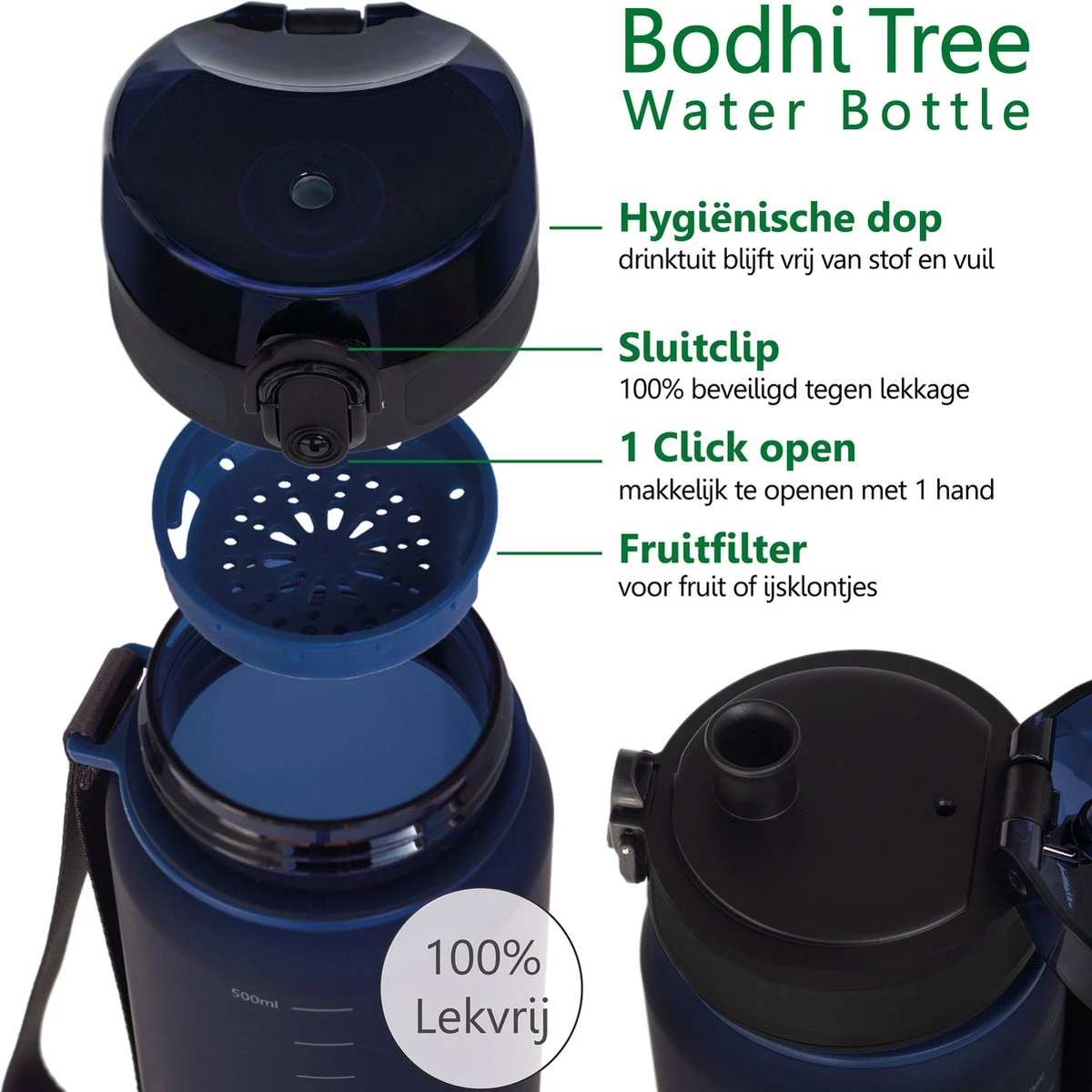 - PERFECTE SPORTFLES – De Bodhi Tree waterfles is ontworpen voor optimaal gebruik bij yoga, fitness en buitensport. De fles is met 1 hand te openen en het water stroomt er makkelijk uit voor een snelle dorstlessing. De beschermende dop zorgt ervoor dat de drinkopening altijd hygiënisch schoon blijft.