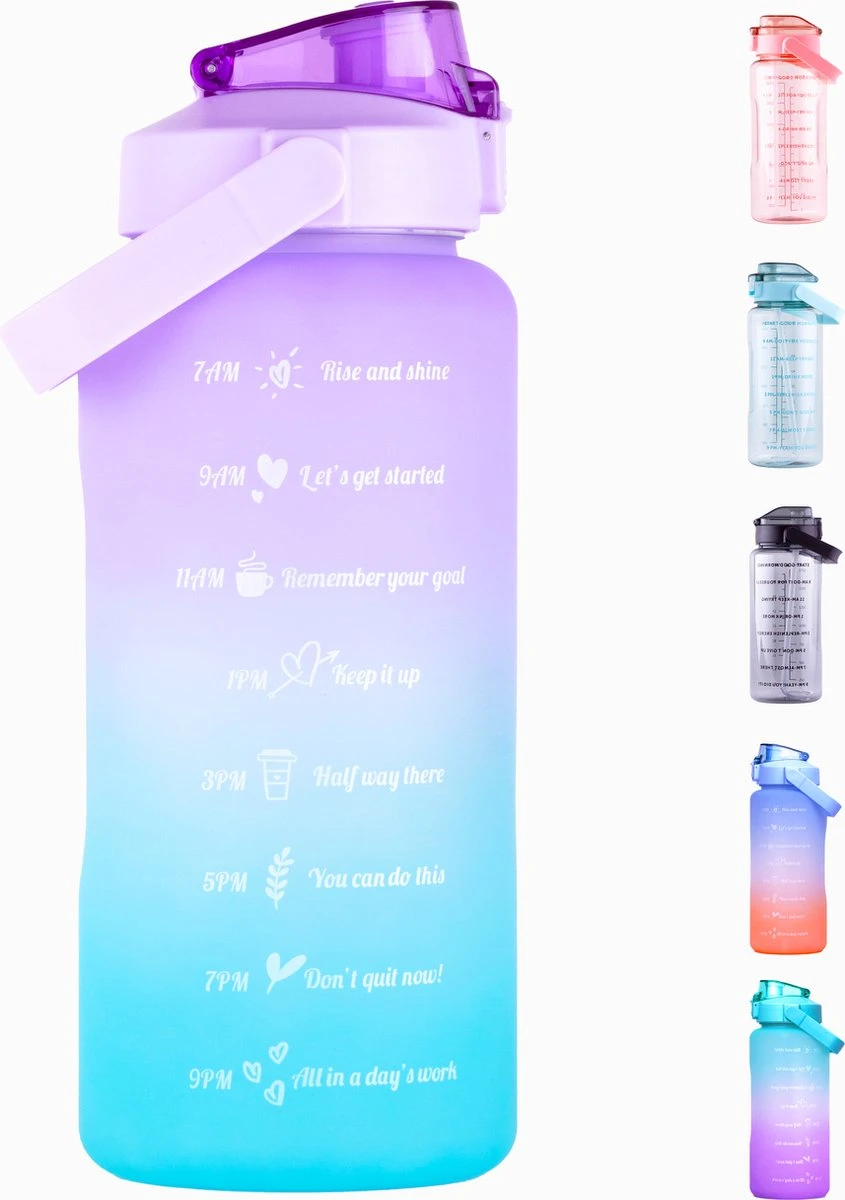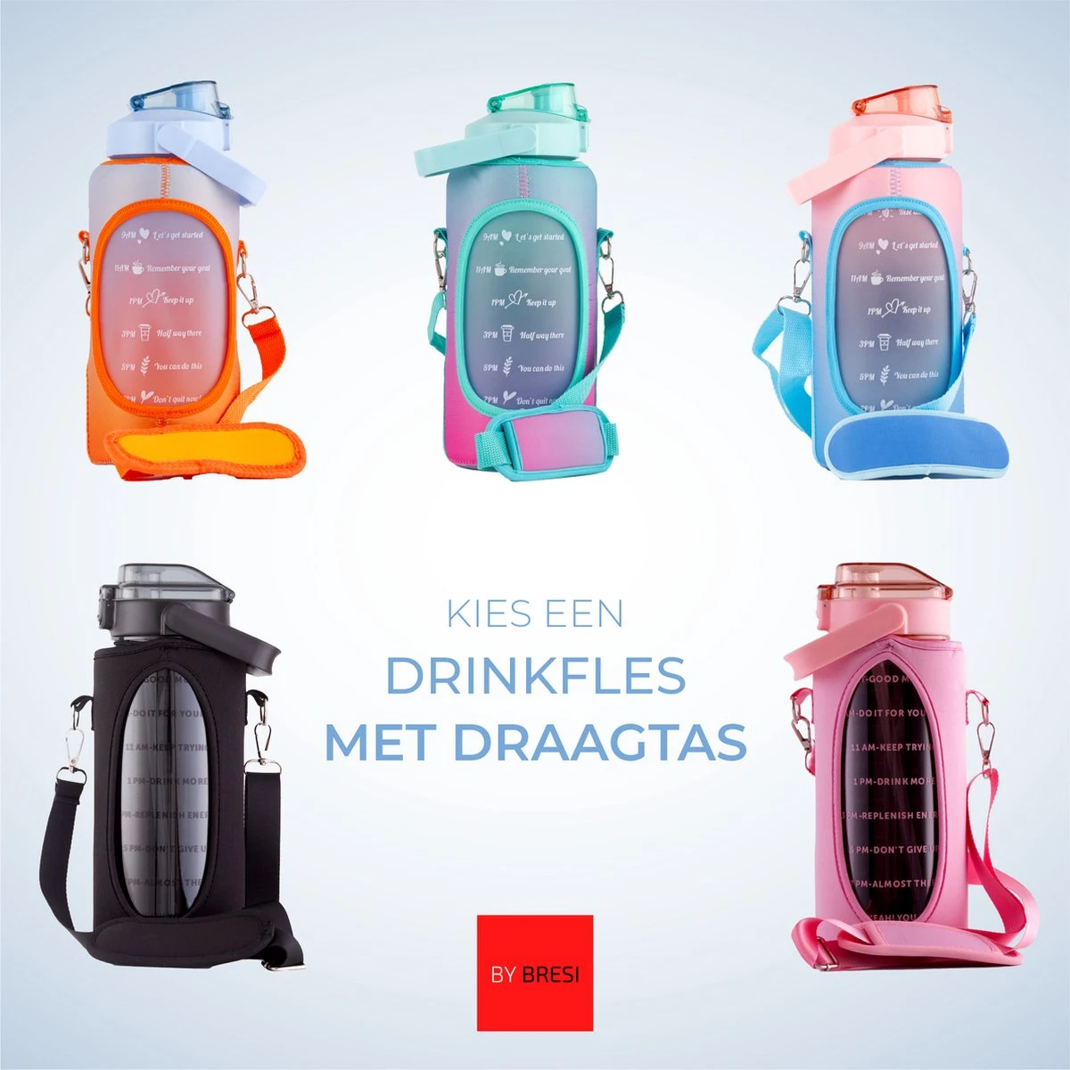Met de motivatie waterfles blijf je gemotiveerd om te drinken en kan je precies bijhouden op welk tijdstip, je welk niveau bereikt moet hebben. De fles bevat een capaciteit van 2 liter, waardoor jij genoeg water binnen krijgt de hele dag. Deze flessen maken het voor jou een stuk makkelijker om jouw dagelijkse hoeveelheid vocht binnen te krijgen. Hierdoor zal je eveneens meer energie hebben gedurende de dag. Door de unieke look van de fles is deze ook uiterst geschikt om mee te nemen naar de fitness, werk of andere gelegenheden. Tevens zorgt het flexibele opzet stukje aan de onderkant van het rietje ervoor dat je geen lucht opzuigt en dat je elke dag het onderste uit de ‘kan’ haalt.