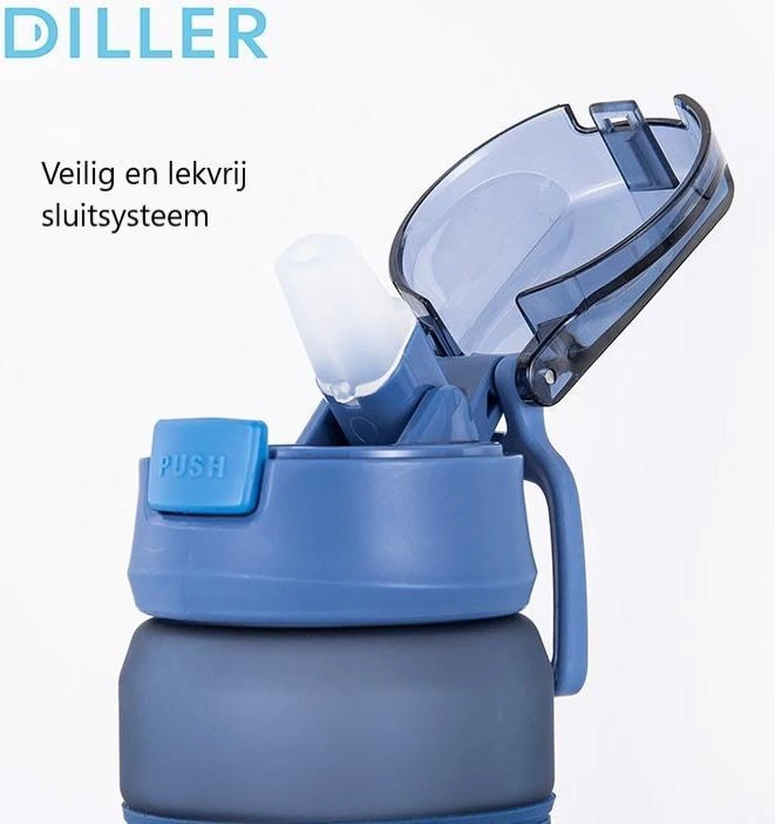 Door het lekvrije en praktische sluitsysteem kun je met één hand de Diller Drinkfles openen en sluiten. Je hoeft niet meer beide handen te gebruiken zoals bij het openen van een gewone waterfles. Bovendien is het drinken met een rietje vele malen comfortabeler.