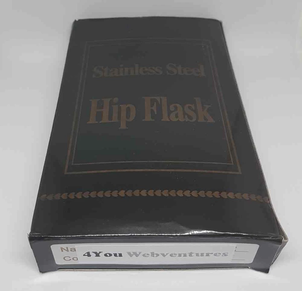 Met prachtig bruin kunstleer bekleedde roestvrij stalen heupfles.