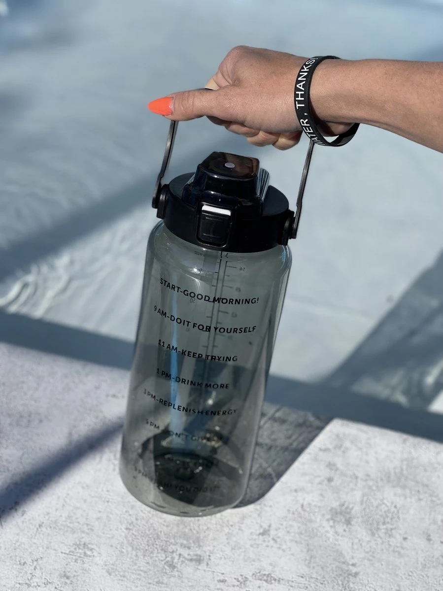 Merkloos Waterfles 2 Liter Zwart Transparant – Gratis Armband – Waterfles Met Rietje – Grote Waterfles – Sportbidon – Twee Liter Waterfles – Sportfles – Sportfles Fitness – Bottle 2 Liter- Drinkfles – Schenkfles – Zwart Transparant – Armbandje – Waterflessen
