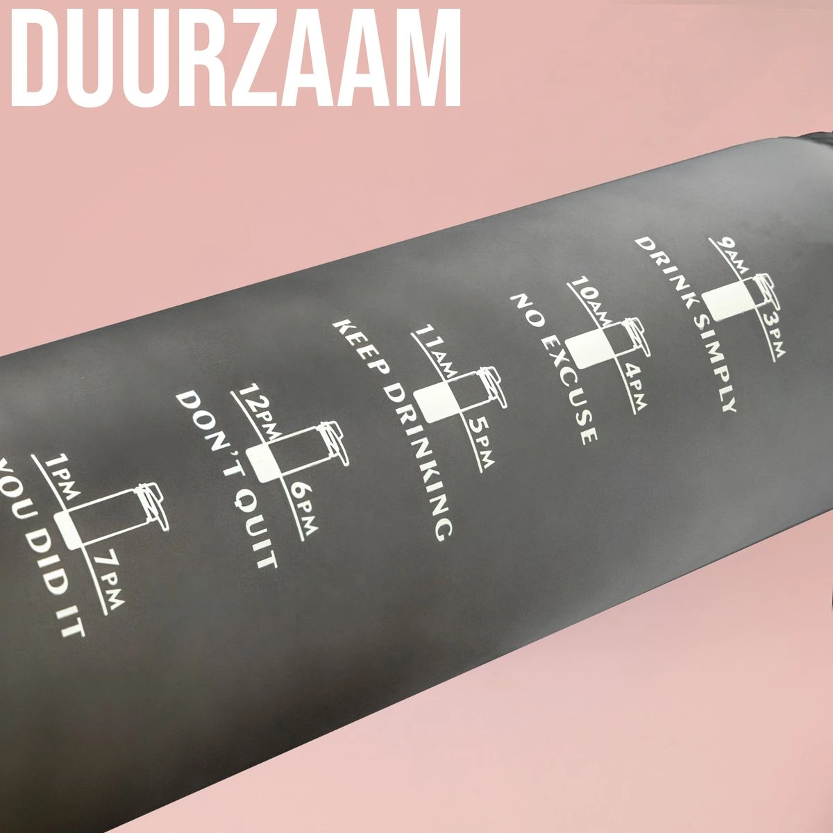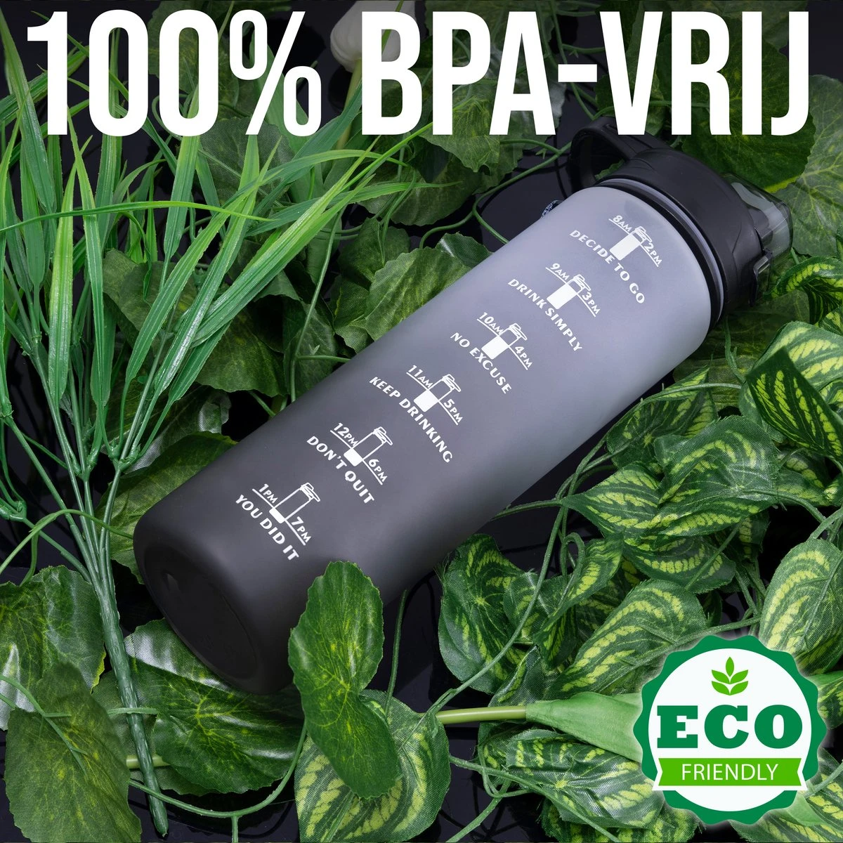 Op zoek naar een handige drinkfles die je helpt om genoeg te drinken? Deze waterfles van 1 liter is van alle gemakken voorzien. De drinkfles heeft een hip design, een handige drinktuit en is gemakkelijk mee te nemen. Door de motiverende teksten op de zijkant van de drinkfles kun je precies bijhouden of je wel genoeg drinkt.