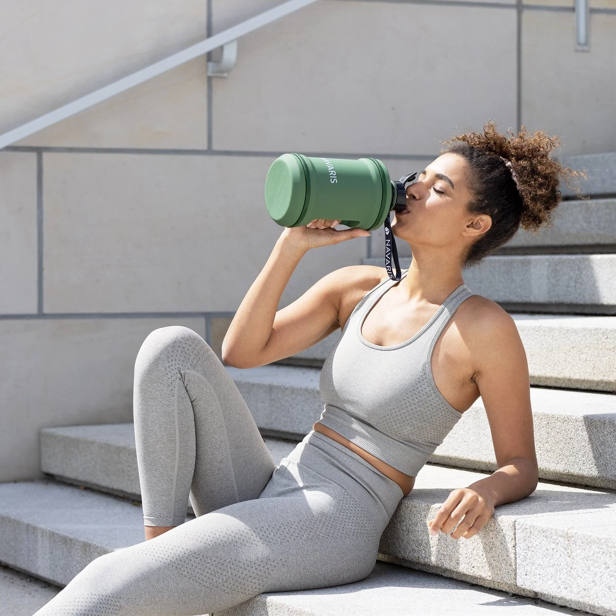 Deze XL waterfles van Navaris is dankzij z’n grote inhoud ideaal voor onderweg, in de sportschool of op reis. Hij is keer op keer herbruikbaar en dus een milieuvriendelijke keuze. LEKKER LICHT