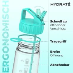 Diller Waterfles Met Rietje – Drinkfles – Handig Sluitsysteem – 750ml – Wit – Tritan & BPA-vrij