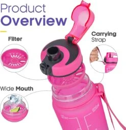 Nimma® Motivatie Waterfles – 1 Liter Drinkfles – Met Tijdmarkeringen En Fruitfilter – Roze Paars