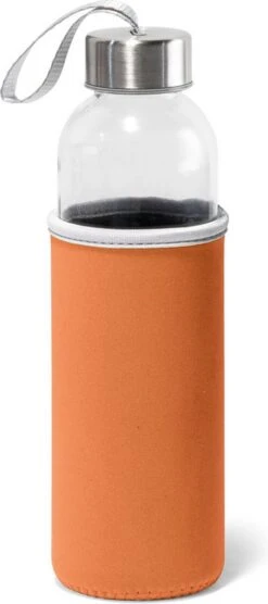 2x Stuks Glazen Waterfles/drinkfles Met Oranje Softshell Bescherm Hoes 520 Ml – Sportfles – Bidon