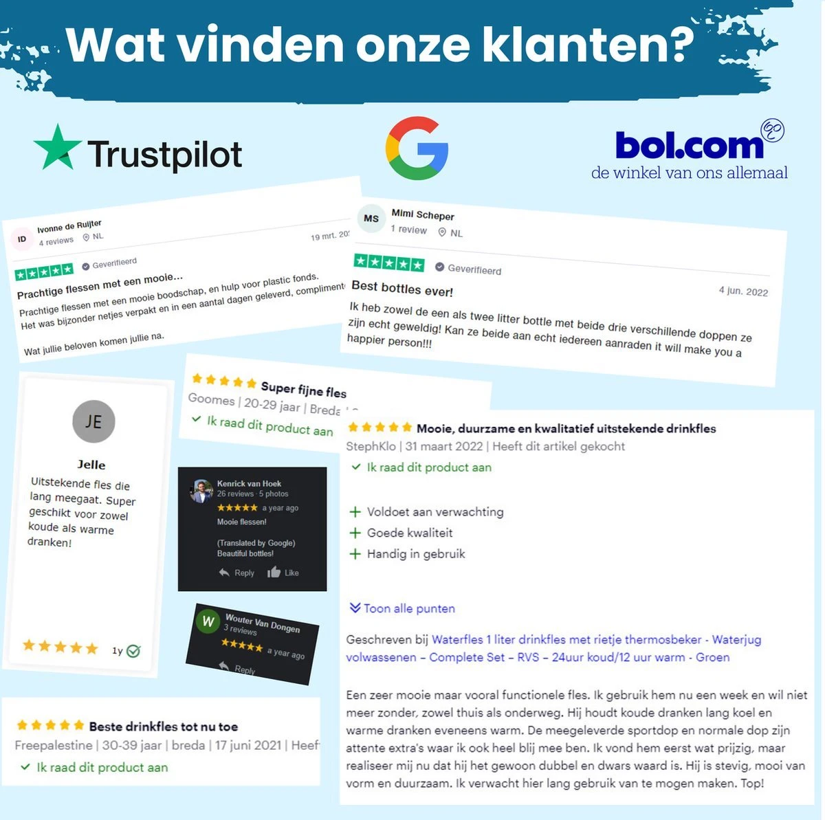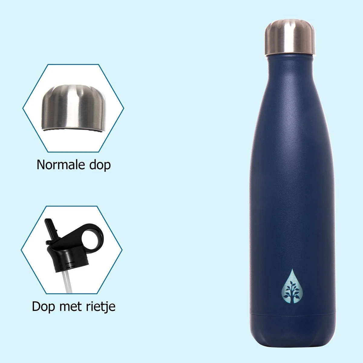 !Let op! : De fles is 100% lekvrij met de normale RVS dop. De dop met rietje is gevoelig en niet geschikt om ondersteboven te postioneren. Doe je jouw fles in een tas? Doe in je tas altijd de normale RVS dop op de fles
